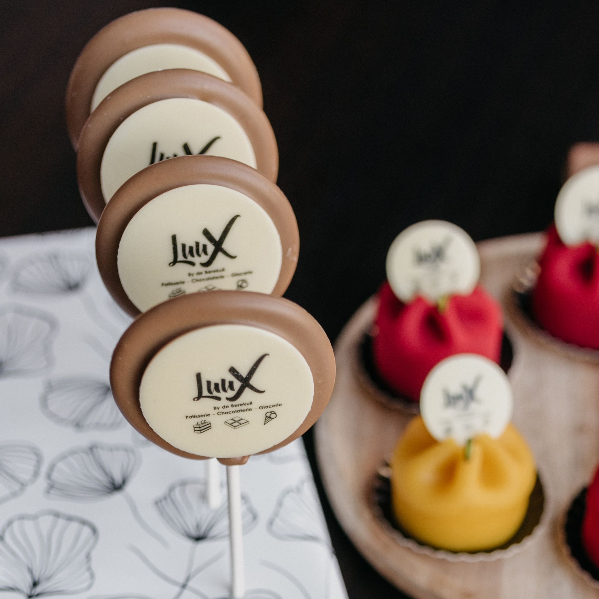 De afbeelding wordt altijd op witte chocolade afgedrukt. Voor de achtergrond van de chocoladelolly kan gekozen worden uit melk, wit of pure chocolade. Dit kan worden aangegeven bij smaak/notitie. U kunt aangeven of u de lolly’s per stuk wilt laten verpakken. Zo niet dan prikken wij de chocolade lolly’s in een stukje piepschuim met cadeaupapier eromheen en pakken het geheel in cellofaan. Wilt u de lolly’s wel per stuk verpakt hebben? Dan plaatsen wij ze daarna ook in een stukje piepschuim met cadeaupapier eromheen en pakken het geheel ook in cellofaan in.