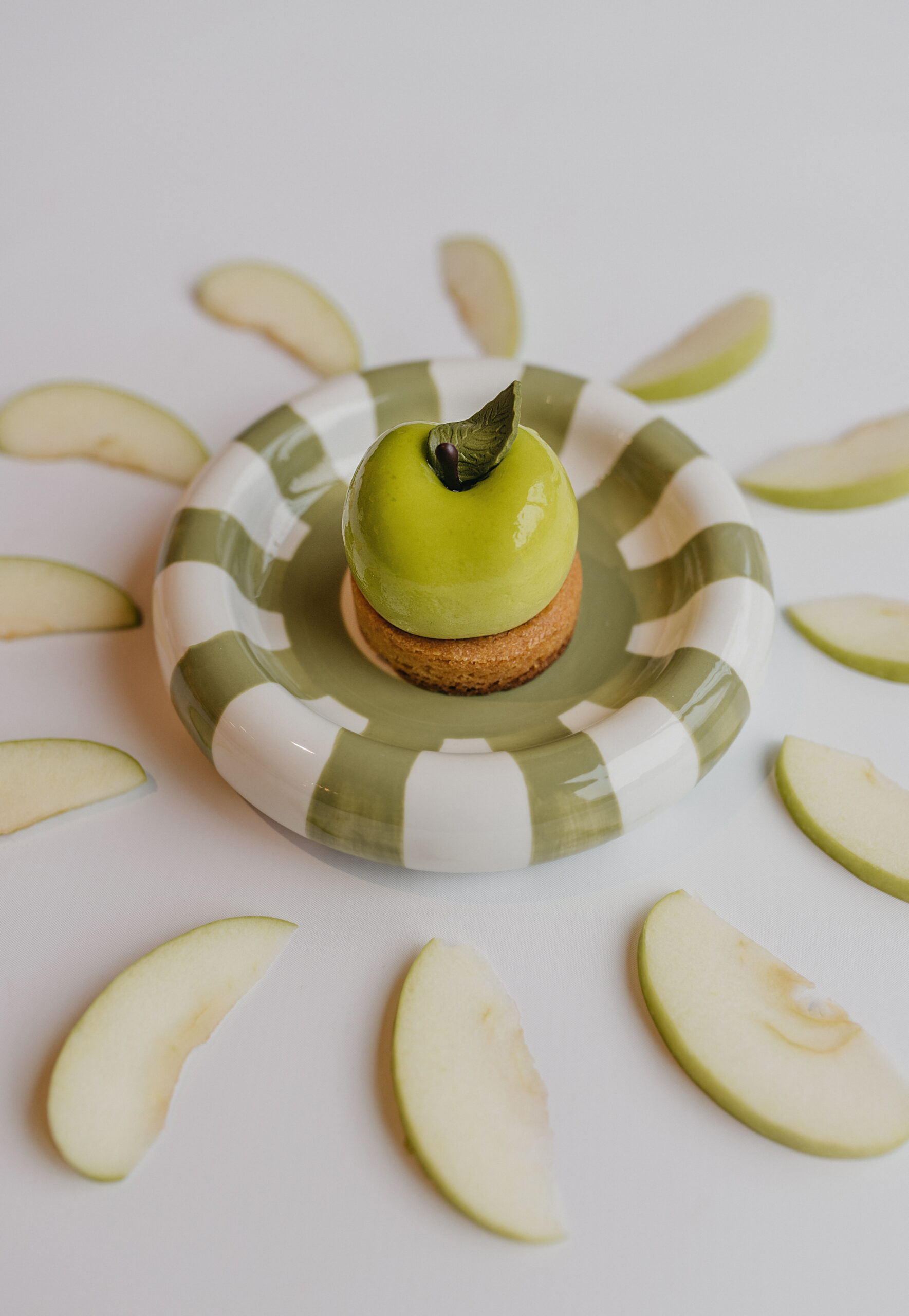 Dit gebakje bestaat uit een sloffenbodem met citroenspijs, duchesse biscuit, een Granny Smith-vanillecompote en verveine limoenmousse. Het gebakje is afgespoten met groene gelei en voorzien een chocolade/fondant decoratie.